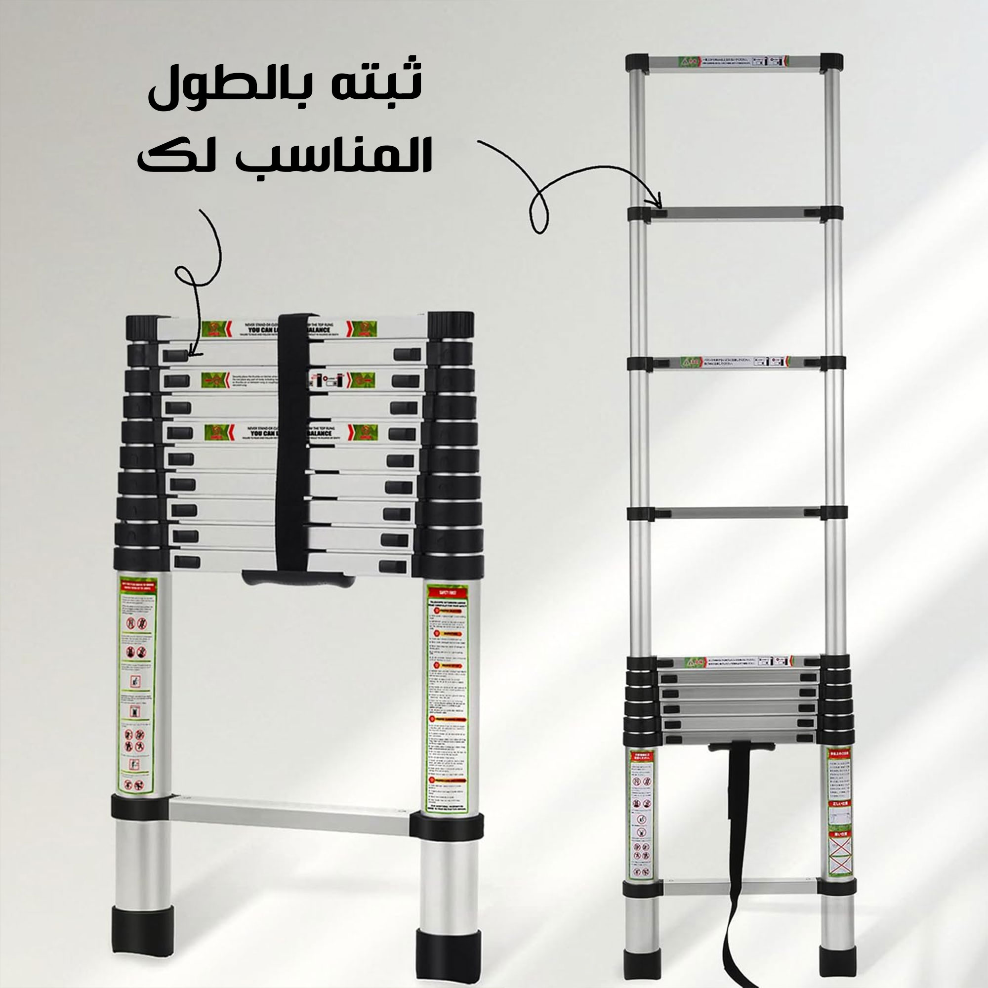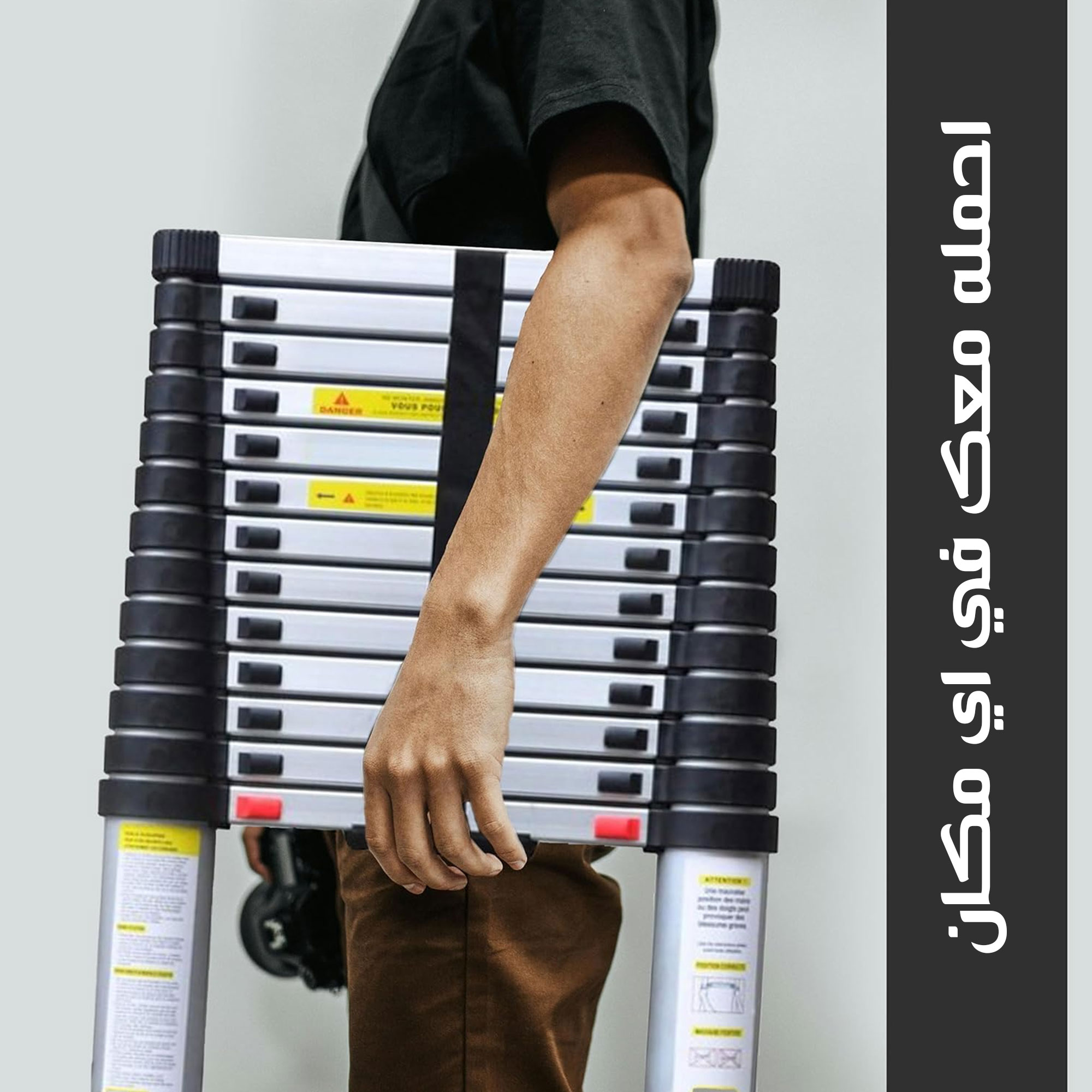 قم بالوصول إلى الأماكن المرتفعة بأمان وسهولة مع هذا السلم التلسكوبي القابل للطي. مثالي للمهام المنزلية، التنظيف، أو أعمال الصيانة الخفيفة. يتميز بتصميمه الذكي الذي ينزلق ويتمدد إلى الطول المطلوب، ثم ينطوي بشكل مدمج جداً لسهولة التخزين في الخزانة أو صندوق السيارة. خفيف الوزن ولكنه قوي ومتين (غالباً من الألومنيوم)، مع أقدام غير قابلة للانزلاق لضمان الثبات.